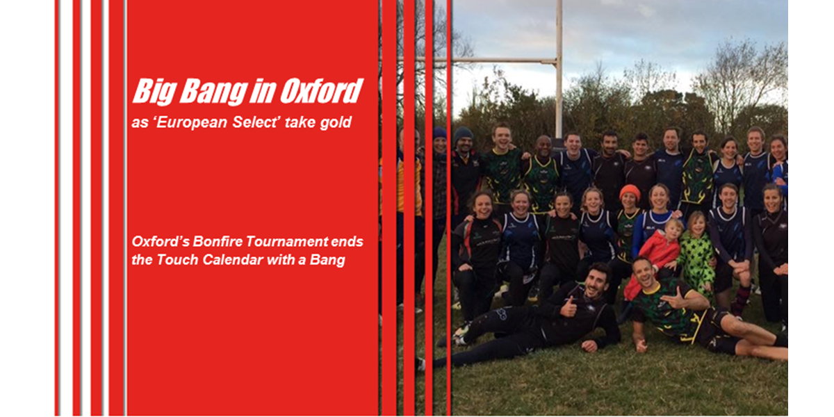 A cold but clear November 5th saw Oxford Touch joined by 14 teams, 10 refs, Peter the Physio and banana-choc chip muffins at their Gosford All Blacks home in Oxford for the 7th outing of the annual Bonfire Tournament. A popular late season tournament for experienced players keeping their hand in and new players having their first competitive experience, this year saw a continen ...