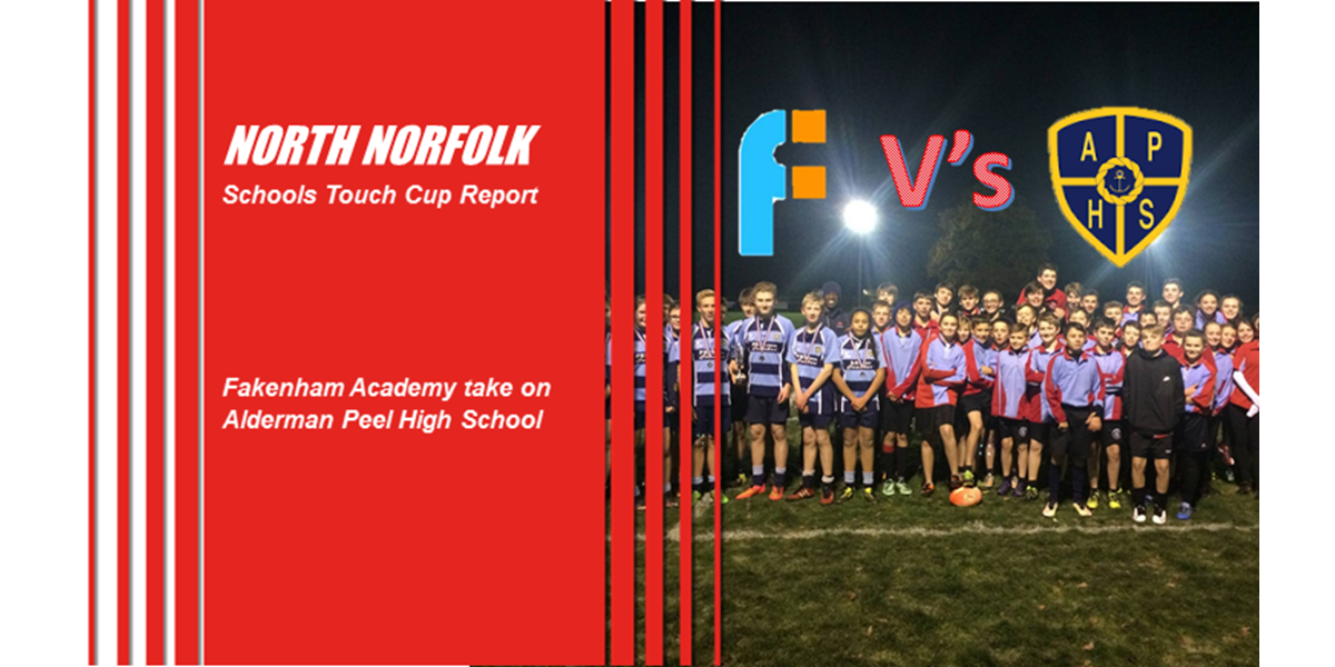 On a brisk Tuesday evening Fakenham Academy and Alderman Peel High School competed for the first ever North Norfolk Schools Touch Cup under floodlights at Fakenham Rugby Club. [caption id="attachment_30417" align="alignnone" width="2113"] Fakenham Academy and Alderman Peel High School competed for the first ever North Norfolk Schools Touch Cup[/caption]Pupils from both sch ...
