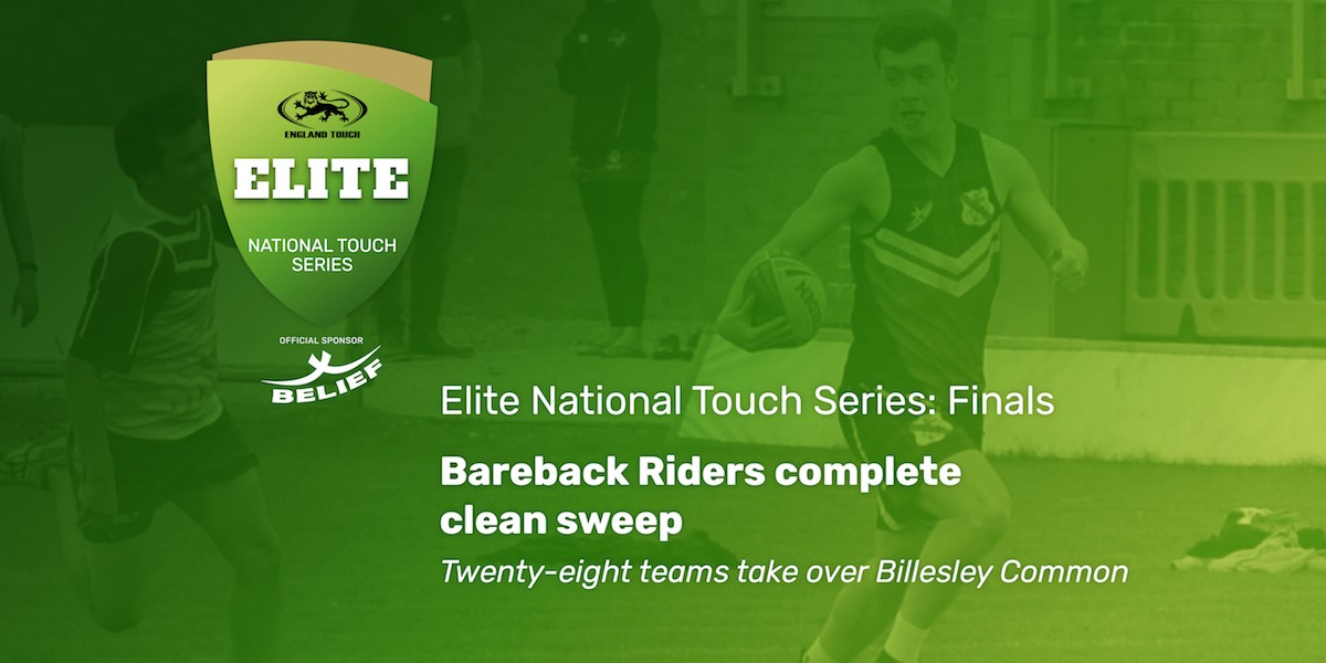 Bareback Riders completed the clean sweep of Belief Sports Elite National Touch Series titles in Birmingham, and in doing so confirmed their place as the number one Mixed team in the country. Bareback Riders saw off Nottingham Hoods, London Galaxy and Cambridge Hornets en route to their third Elite Cup title, which followed their successes in Nottingham and London in Rounds 1 a ...