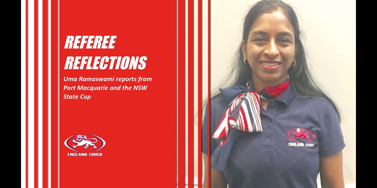 It has not just been the Men’s Open team that has been representing England Touch in the New South Wales State Cup this weekend; Uma Ramaswami has also been in Port Macquarie as the Men’s Open team referee.[caption id="attachment_32314" align="alignnone" width="1030"] Uma with the Men's Open team[/caption]Uma is a stalwart of the England Touch refereeing community and has plent ...