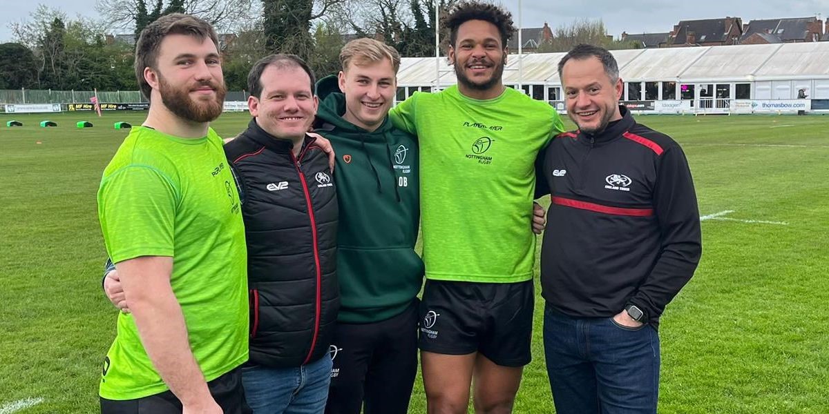 Photo shows (from left to right), Nottingham Rugby and Nottingham Touch player Jack Dickinson, England Touch High Performance Director Ben Powell, Nottingham Rugby Marketing and Media Officer Ollie Brewill, England Touch CEO Chris Simon and Nottingham Rugby Community Manager Michael Green.
