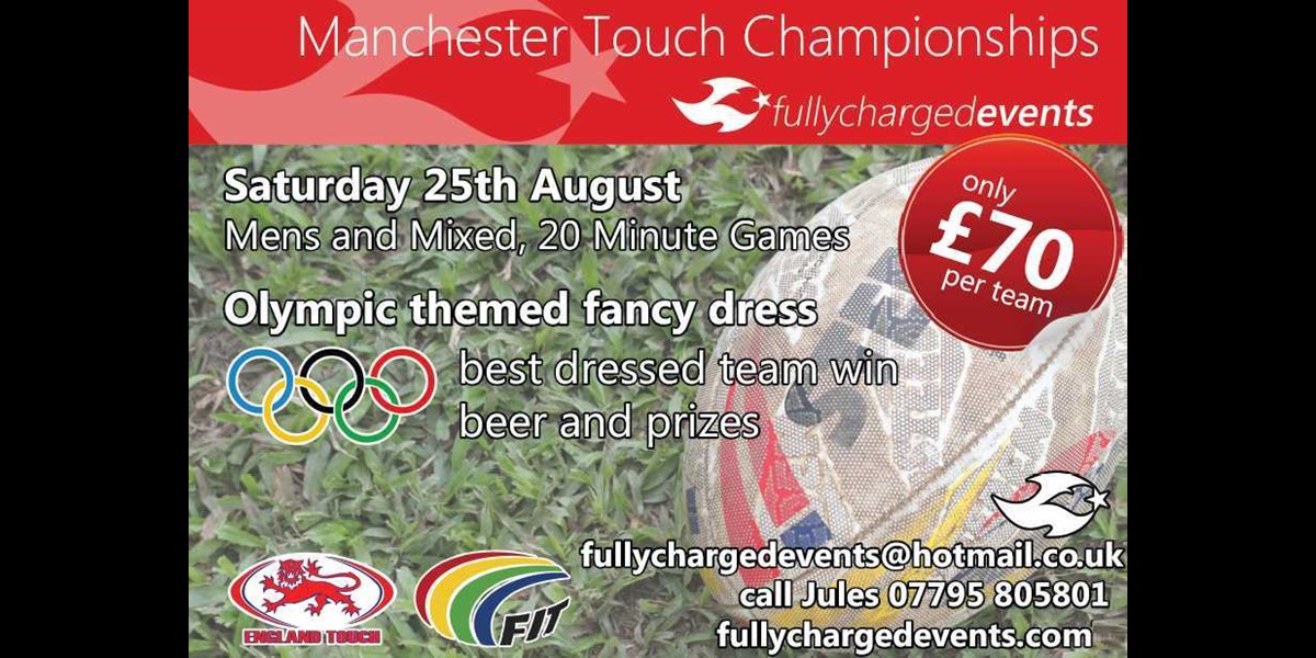 Please see the attached poster for information on an upcoming 1 day Touch competition in Manchester. This is a friendly social comp open to all to enter.When: Saturday 25th AugustWhere: Trafford MV, Finny Bank Road, M33 6LRCost: £70Categories: Mixed and Men'sFancy dress theme: Olympics, each team will be given an olympic country to represent. Prizes for the best dressed team!Th ...